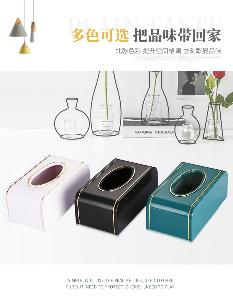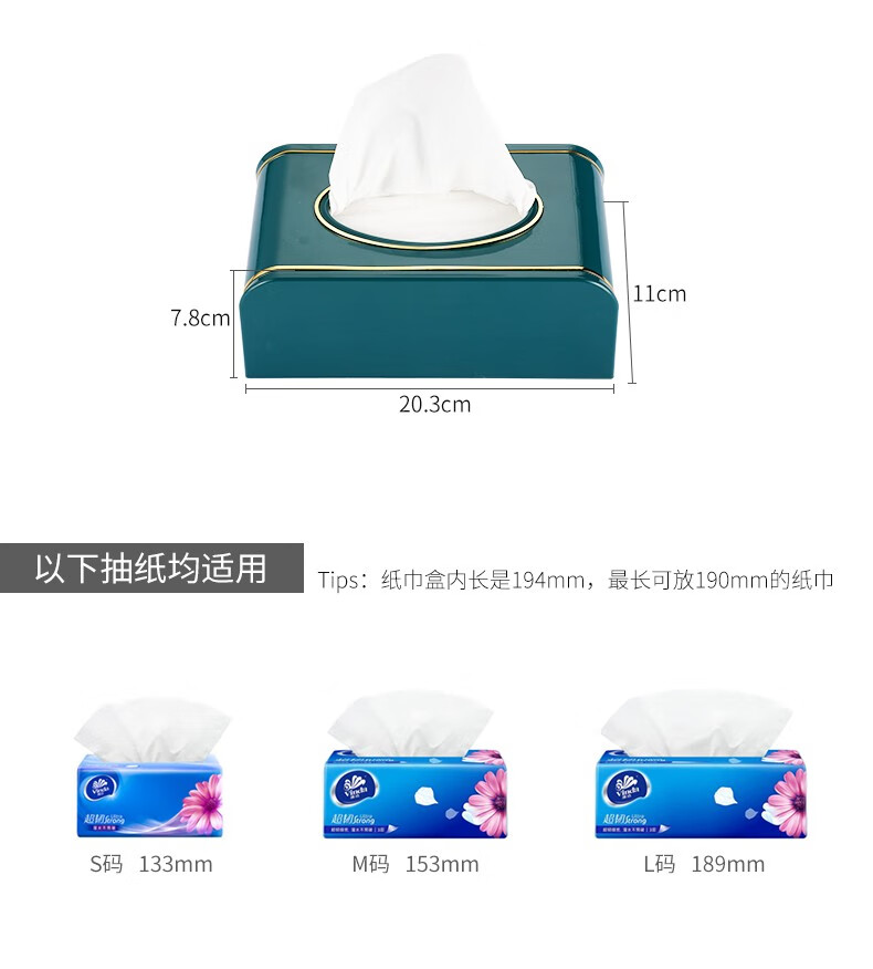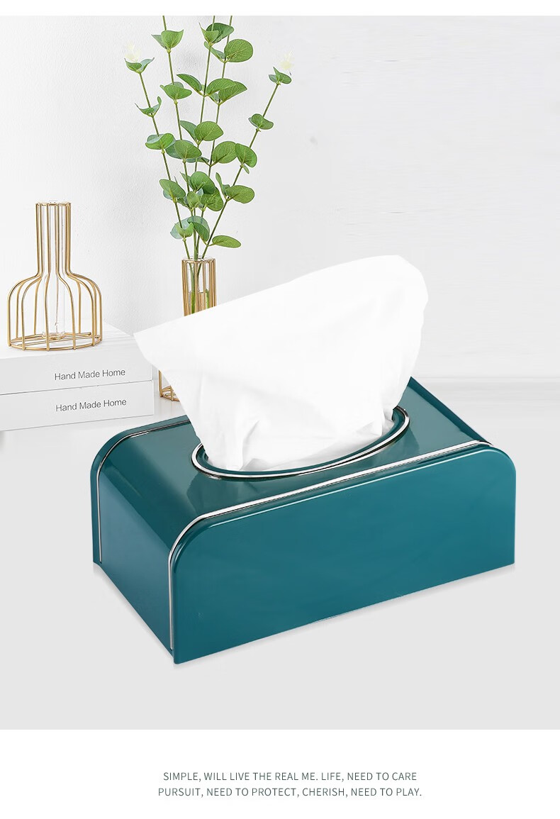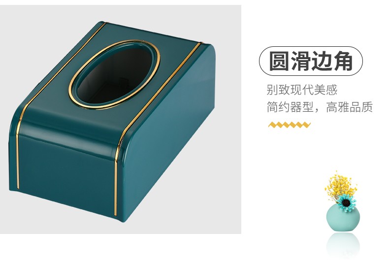 索力德纸巾盒抽纸盒家用客厅餐厅茶几简约北欧风收纳创意家居用品桌面抽纸盒家用纸巾盒轻奢ins创意简约 祖母绿-金边