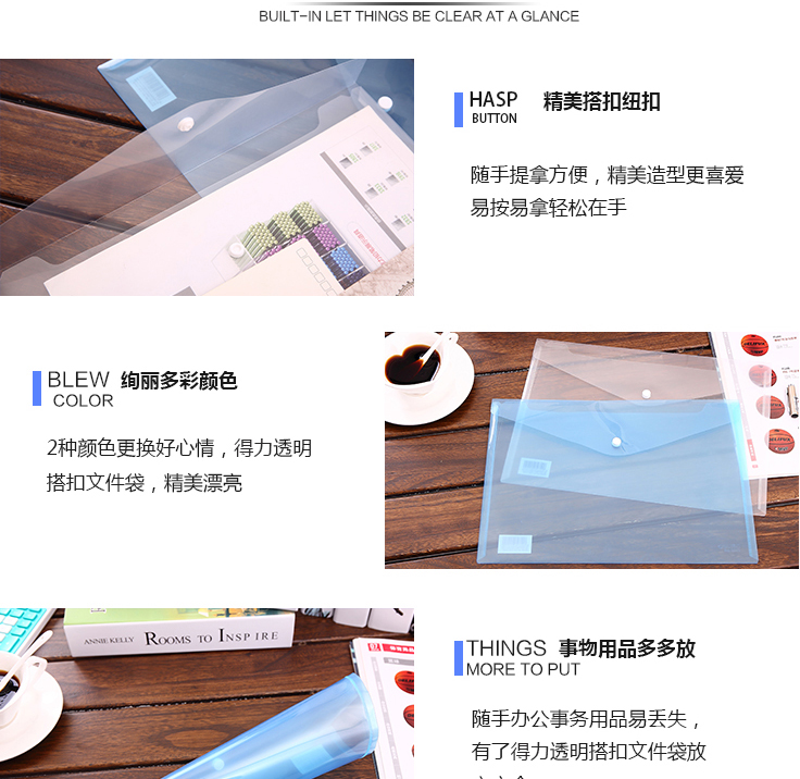 文件袋纽扣袋塑料公文袋按扣资料袋档案袋A4透明